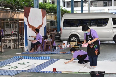 ทีมวากภาพที่ได้รับการคัดลือกให้เข้ารอบชิงชนะเลิศ 3 ทีม ปฏิบัติงานวาดถาพบนแผ่นไม้อัด ระหว่างวันที่ 26-29 มกราคม 2565 ณ โดมรวมน้ำใจ วิทยาลัยอาชีวศึกษาสุพรรณบุรี
