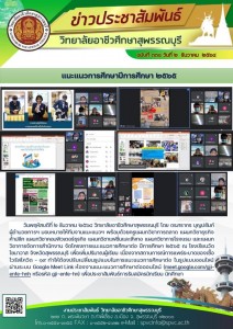 วันที่ 20 พฤศจิกายน 2564 วิทยาลัยอาชีวศึกษาสุพรรณบุรี โดย ดร.ศรากร บุญปถัมภ์ ผู้อำนวยการฯ เป็นประธานในการจัดประชุมผู้ปกครองนักเรียน นักศึกษา ในรูปแบบ Online โดยผ่าน Facebook Live และ Youtube Channel ของงานประชาสัมพันธ์ วิทยาลัยอาชีวศึกษาสุพรรณบุรี ทั้งนี้เพื่อเป็นการสร้างความเข้าใจในด้านการจัดการเรียนการสอน ช่วงสถานการณ์โรคระบาด COVID-19