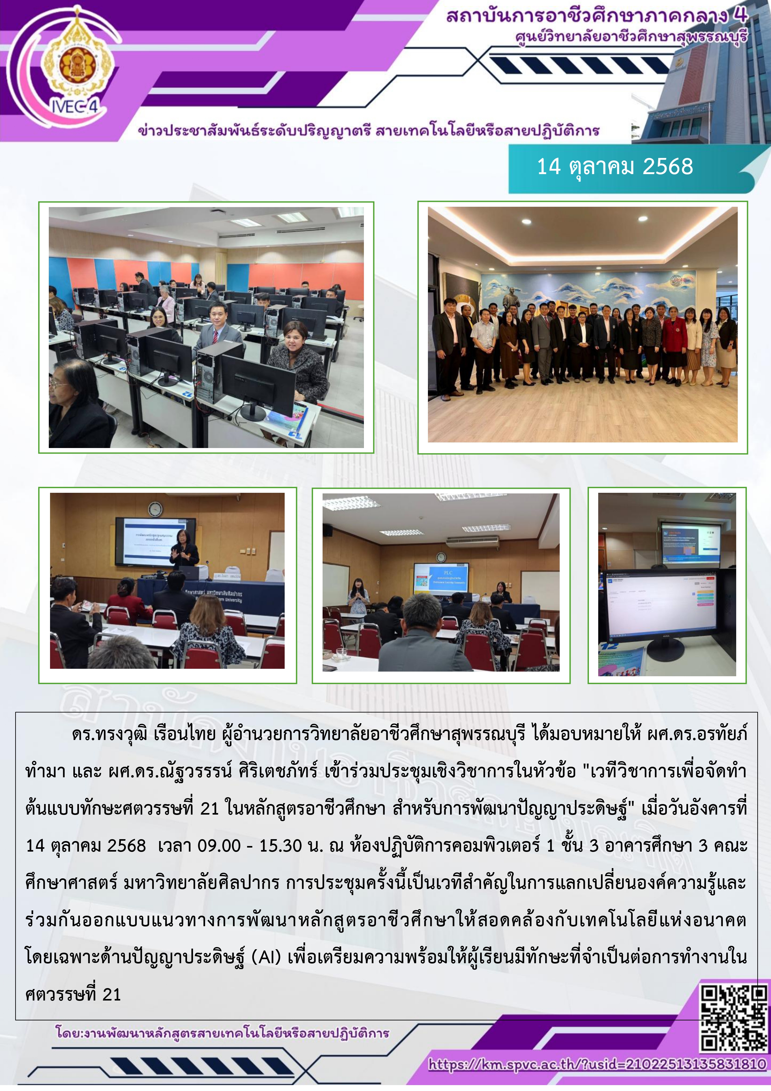 14 ตุลาคม 2568 เข้าร่วมประชุมเชิงวิชาการในหัวข้อ 'เวทีวิชาการเพื่อจัดทำ ต้นแบบทักษะศตวรรษที่ 21 ในหลักสูตรอาชีวศึกษา สำหรับการพัฒนาปัญญาประดิษฐ์'